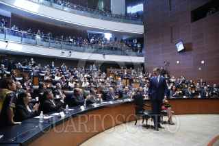MÉXICO, D.F., 30JUNIO2015.- Los Reyes de España Felipe VI y Letizia acudieron a una ceremonia solemne en la Cámara de Senadores, al finalizar el protocolo parlamentario firmaron un libro de visitantes distinguidos. FOTO: CUARTOSCURO.COM