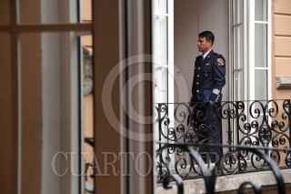 MÉXICO, D.F., 30JUNIO2015.- Un joven miembro de la Fuerza Aérea Mexicana espera en un balcón el inicio de la presentación del libro 50 años ASA. FOTO: ISABEL MATEOS /CUARTOSCURO.COM