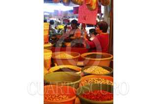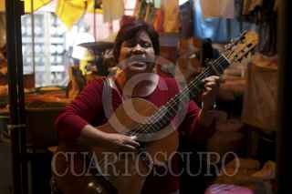 TEPOZTLÁN, MORELOS, 30JUNIO2015.- Una mujer se gana la vida cantando con su guitarra canciones tradicionales mexicanas en medio del mercado de Tepoztlán. FOTO: PATRICIA MORALES /CUARTOSCURO.COM