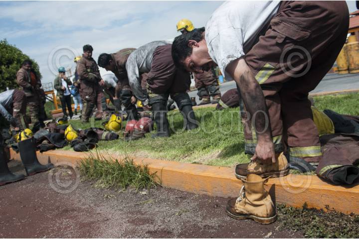 TIZAYUCA, HIDALGO, 01JULIO2015.- Elementos de emergencia de Protección Civil del Distrito Federal, recibieron un curso teórico-práctico sobre el manejo seguro del gas licuado de petroleo y control de incendios impartido por la Asociación Mexicana de Profesionales en Gas (AMPEGAS) en el centro de capacitación "La Posta". El curso tuvo como objetivo promover una cultura en la seguridad de las instalaciones de gases combustibles que permita salvar vidas a través de la prevención de accidentes. Fausto Lugo García, titular de Protección Civil capitalina, asistió al curso para supervisar y conocer el funcionamiento del centro de capacitación. FOTO: DIEGO SIMÓN SÁNCHEZ /CUARTOSCURO.COM