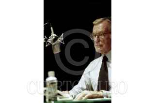 MÉXICO, D.F., 02JULIO2015.- El periodista Jacobo Zabludovsky falleció en la ciudad a la edad de 87 años. Zabludovsky había estado hospitalizado por una deshidratación de la que estaba mejorando, pero finalmente perdió la vida por un derrame cerebral en la Ciudad de México alrededor de las 02:00 horas. El comunicador de origen judío fue el conductor del noticiario 24 horas, uno de los más icónicos del país durante 27 años de transmisión. También fue el único periodista en hacer una crónica transmitida en vivo tras el terremoto de 1985 que devastó a la Ciudad de México. La imagen es del 3 de septiembre de 2001 durante su inicio como titular del programa noticioso de Radio Centro. FOTO: VICTORIA VALTIERRA /ARCHIVO/CUARTOSCURO.COM