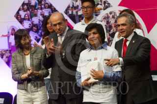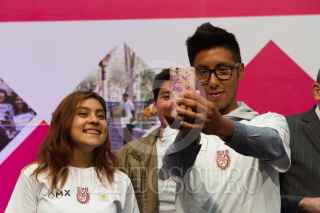 MÉXICO, D.F., 03JULIO2015.- Jovenes politécnicos se toman una selfie al finalizar la ceremonia en donde se firmo un convenio de colaboración institucional IPN-CDMX, en el Antiguo Palacio del Ayuntamiento. FOTO: MOISÉS PABLO /CUARTOSCURO.COM