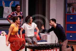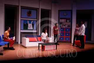 MÉXICO, D.F., 03JULIO2015.- Zuria Vega, Alberto Guerra Regina Blandón, Pía Aún, Efraín Berry, Georgina Levín y Daniel Tovar durante el estreno de la obra "Bonobos", producida por Morris Gilbert y presentada en el Teatro Banamex. FOTO; SAÚL LÓPEZ /CUARTOSCURO.COM