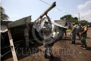 VERACRUZ, VERACRUZ, 04JULIO2015.- Elementos del Ejercito Mexicano y la Fuerza Civil implementaron el plan de auxilio “DN-III-E” luego de que tres viviendas colapsaran por las intensas lluvias que azotaron diversos estados de México. La onda tropical numero 12 dejó en la ciudad de Veracruz calles inundadas, afectaciones económicas y un hombre que perdió la vida luego de inundarse el cuarto de lámina donde vivía. FOTO: FÉLIX MÁRQUEZ /CUARTOSCURO.COM
