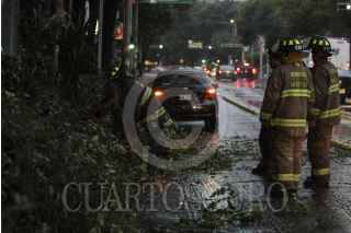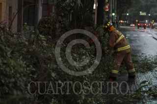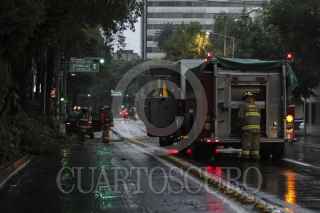 MÉXICO, D.F., 05JULIO2015.- A causa de las fuertes lluvias en la ciudad, un árbol callo en la avenida Juan Escutia casi esquina con la calle de Atlixco en la colonia Condesa. Bomberos y elementos de la policía auxiliar acudieron a la zona para retirar el árbol que se encontraba sobre los dos primeros carriles de la avenida. FOTO: ISABEL MATEOS /CUARTOSCURO.COM