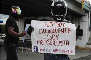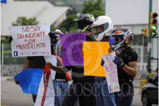 CHILPANCINGO, GUERRERO, 05JULIO2015.- Integrantes del Motoclub Wasp Bikers, se manifestaron en el crucero de la avenida Ruffo Figueroa, con pancartas piden ser respetados por los automovilistas, así como un alto por al constante robo de motocicletas. Se colocaron en el espacio peatonal con cartulinas. FOTO: JOSÉ I. HERNÁNDEZ /CUARTOSCURO.COM