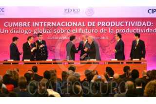 MÉXICO, D.F., 06JULIO2015.- Enrique Peña Nieto, presidente de México, Luis Videgaray, Secretario de Hacienda y José Ángel Gurría, Secretario General de la OCD, presidieron los trabajos de la Cumbre Internacional de Productividad, realizada en la Secretaria de Relaciones Exteriores. FOTO: ADOLFO VLADIMIR /CUARTOSCURO.COM