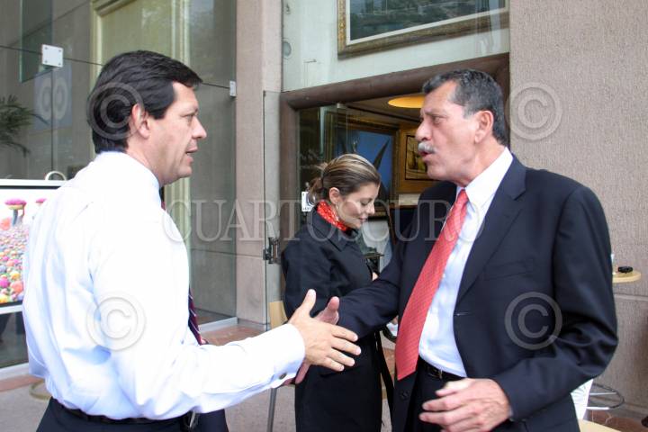 MEXICO, D.F., 12MAYO2006.- Jeffrey Davidow, ex-secretario de estado de EE.UU. y Roberto Campa, candidato a la presidencia de la República por el Partido Nueva Alianza, coincidieron en un hotel de la zona de Polanco. FOTO: Moisés Pablo/CUARTOSCURO.COM
