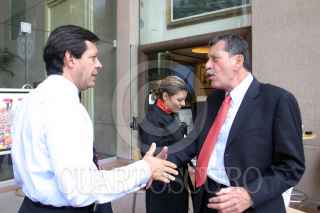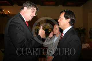 MEXICO, D.F., 12MAYO2006.- Jeffrey Davidow, ex-secretario de estado de EE.UU. y Roberto Campa, candidato a la presidencia de la República por el Partido Nueva Alianza, coincidieron en un hotel de la zona de Polanco. FOTO: Moisés Pablo/CUARTOSCURO.COM