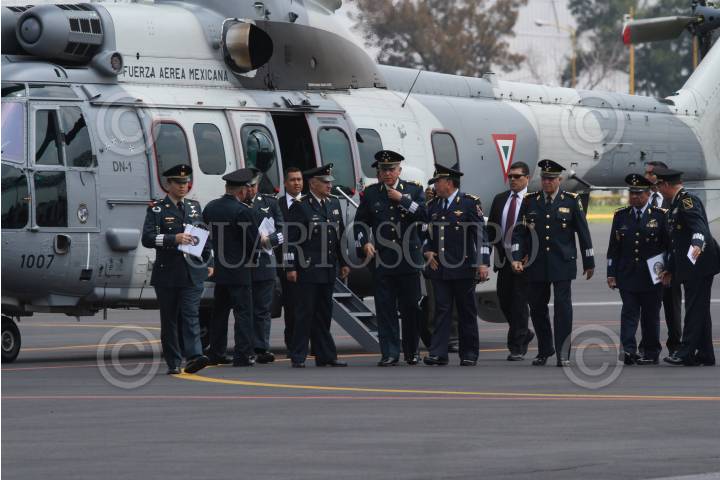 MÉXICO, D.F., 06JULIO2015.- En conmemoración del "XCVIII Aniversario del Primer Correo Aéreo en México" en la Unidad de Transporte Aéreo del Alto Mando (UETAAM). El evento fue presidido por Salvador Cienfuegos Zepeda, titular de la Secretaria de Defensa Nacional; Vidal Fco. Soberón Sanz, titular de la Secretaria de Marina; Elena Tanus, titular de la Oficina de Correos de México, Gerardo Ruiz Esparza, titular de la Secretaria de Comunicaciones y Transportes y Carlos Rodríguez Munguía, titular de la Fuerza Aérea Mexicana. FOTO: ISABEL MATEOS /CUARTOSCURO.COM