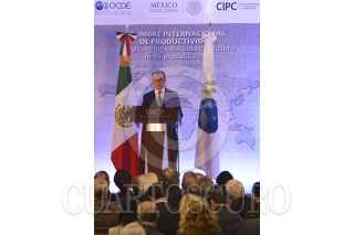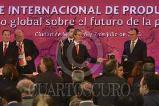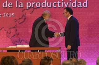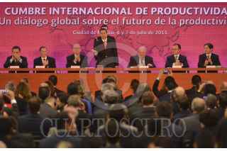 MÉXICO, D.F., 06JULIO2015.- Enrique Peña Nieto, presidente de México, Luis Videgaray, Secretario de Hacienda, José Ángel Gurría, Secretario General de la OCD y Enrique Iglesias, presidente del Banco Interamericano de Desarrollo (IDB), presidieron los trabajos de la Cumbre Internacional de Productividad, realizada en la Secretaria de Relaciones Exteriores. FOTO: ADOLFO VLADIMIR /CUARTOSCURO.COM