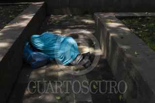 MÉXICO, D.F., 07JULIO2015.- Hombre sin hogar duerme en el camellón de Reforma casi esquina con Circuito Interior. FOTO: MOISÉS PABLO /CUARTOSCURO.COM