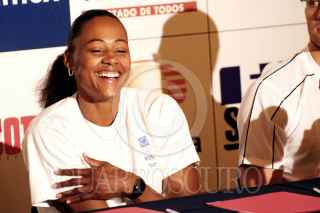 XALAPA, VERACRUZ 12MAYO2006.- El atleta Allen Jonhson en conferencia de prensa dijo que Realmente ya no participa en muchas competencias trata de correr y participar en los eventos donde realmente le nace y por eso esta en Xalapa donde competira en lo s 100m con vallas. FOTO: Carlos Tischler/CUARTOSCURO.COM
