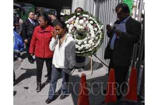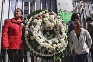 MÉXICO, D.F., 08JULIO2015.- Araceli Bautista y Elia Tamayo acudieron a la CNDH a depositar una ofrenda floral, en memoria de José Luis Tehuatle Tamayo, quien falleció hace un año durante un operativo policiaco. FOTO: ISAAC ESQUIVEL /CUARTOSCURO.COM
