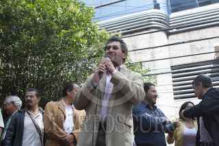 MÉXICO, D.F., 08JULIO2015.- César Cravioto, diputado electo de Morena y futuro coordinador de la bancada en la ALDF y Martí Batres, dirigente nacional de Morena, durante el mitín que simpatizantes de este partido protagonizaron afuera del Tribunal Electoral del Distrito Federal (TEDF) para pedir un recuento el voto x voto casilla x casilla en los resultados de las elecciones del pasado 7 de junio en las delegaciones Coyoacán, Gustavo A. Madero, Iztacalco e Iztapalapa, ya que ellos alegan que hubo fraude electoral por parte del Partido de la Revolución Democrática. FOTO: MOISÉS PABLO /CUARTOSCURO.COM