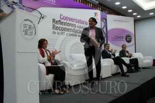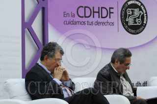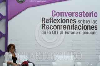 MÉXICO, D.F., 08JULIO2015.- Se llevó a cabo el conversatorio: "Reflexiones sobre las recomendaciones de la OIT al estado mexicano", presidieron el evento: Dra. Perla Gómez Gallardo, titular de la Comisión de Derechos Humanos del Distrito Federal; Susanna Miller, representante de Industriall Global Unión; Arturo Alcalde Justiani, abogado laborista y el Ing. Francisco Hernandez Juárez, representante del Sindicato de Telefonistas de la República Mexicana. Se analizaron y se reflexionaron las recomendaciones por la Organización Internacional de trabajadores al estado mexicano en torno a los contratos colectivos de protección patronal. FOTO: ISABEL MATEOS /CUARTOSCURO.COM