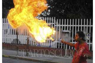 CHILPANCINGO, GUERRERO, 08JULIO2015.- Jóvenes tragafuegos dicen que “La gente luego nos mira mal; la verdad es que es una manera de ganar nuestro sustento diario para la familia, y lo hacemos manera honesta” no perjudicamos a nadie, pedimos cooperación; nos apoya quien mira y le agrada el breve demostración de jugar con el fuego. La imagen fue captada en el crucero de la avenida Juárez, de esta ciudad. FOTOS: JOSÉ I. HERNÁNDEZ /CUARTOSCURO.COM