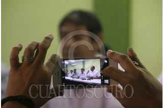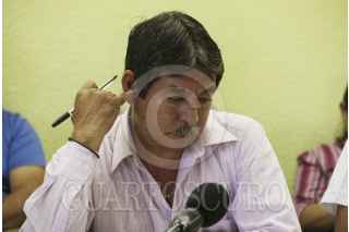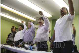 OAXACA, OAXACA, 08JULIO2015.- Los miembros de la Comisión Política de la sección 22 de la Coordinadora Nacional de los Trabajadores de la Educación (CNTE) ofrecieron una conferencia de prensa para desmentir las afirmaciones del dirigente de la organización Mexicanos Primero, Claudio X. González. Rubén Núñez secretario Generla afirmó que su sueldo es de 13 mil pesos quincenales y no supera los cien mil pesos como han asegurado, además dijo que solo cuenta con una plaza y no más. FOTO: ARTURO PÉREZ ALFONSO /CUARTOSCURO.COM