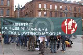 TOULOUSE, FRANCIA, 12MAYO2006.- La tarde de hoy diferentes organizaciones respondieron a una convocatoria del Colectivo de Solidaridad Chiapas-México.Más de un centenar de personas se reunieron en la plaza central de Toulouse, frente al Capitolio (ayuntamiento de la ciudad). Entre las organizaciones se encontraba el colectivo de artistas Mixart-Myrys, quienes desde la lucha del FPDT en contra de la construcción del aeropuerto en Texcoco en 2001 habían establecido lazos de solidaridad con San Salvador Atenco. Varias organizaciones políticas más se vieron representadas. FOTO: Malena Diaz/CUARTOSCURO.COM