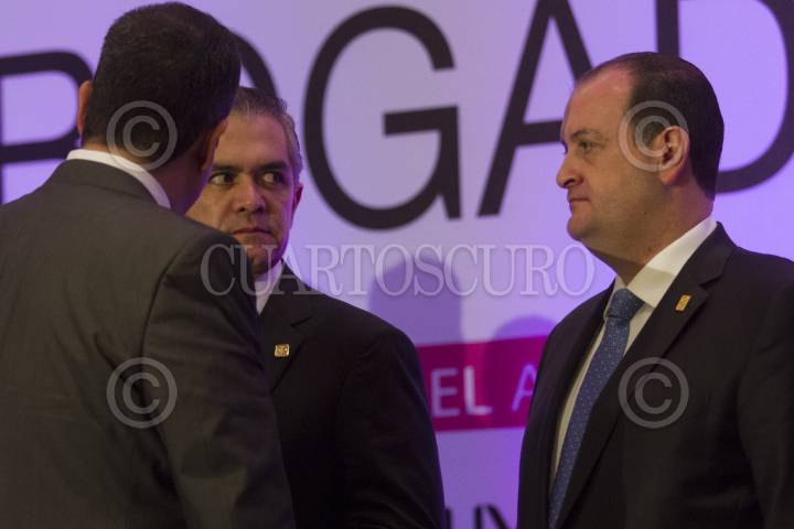 MÉXICO, D.F., 10JULIO2015.- Perla Gómez, presidenta de la Comisión de Derechos Humanos del DF y Luis Raúl González Pérez, presidente de la Comisión Nacional de Derechos Humanos, durante el desayuno con motivo del Día del Abogado encabezado por el Jefe del Gobierno. FOTO: MOISÉS PABLO /CUARTOSCURO.COM