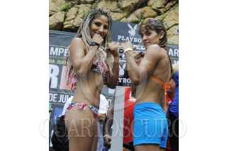 ACAPULCO, GUERRERO, 10JULIO2015.- La pugilista mexicana Mariana Juárez “La Barby” disputará el Campeonato Internacional WBC contra la retadora argentina Vanesa Taborda, en una función programada para el 11 de julio en el Centro Internacional Acapulco. Las boxeadoras protagonizaron el pesaje oficial y revisión médica al pie de la Quebrada. FOTO: JOSÉ I. HERNÁNDEZ /CUARTOSCURO.COM