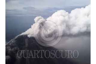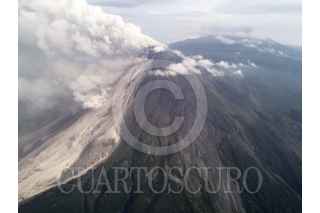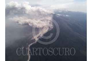 COLIMA, COLIMA, 11JULIO2015.- Tras el incremento en las exhalaciones con material incandescente y fumarolas que registran el volcán de Colima, personal de Protección Civil de Jalisco realizó un sobrevuelo para evaluar las afectaciones provocadas por un fuerte derrumbe en el cono volcánico reportado anoche. El coloso amaneció con fumarolas que alcanza hasta siete mil metros de altura. En ambas entidades se han implementado albergues y por prevención comenzó el desalo de algunas comunidades colindantes al coloso ya que continuarán las erupciones todos los días y hay presencia de material incandescente que puede correr por la ladera. FOTO: PROTECCIÓN CIVIL DE JALISCO /CUARTOSCURO.COM