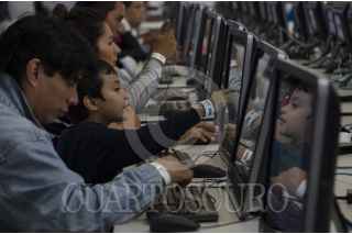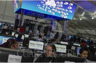 MÉXICO, D.F., 12JULIO2015.- La Aldea Digital, instalada en el Zócalo capitalino, cumple su primer fin de semana después de haber sido inaugurada hace un par de días por el empresario Carlos Slim. Corredores con cientos de computadoras, acceso a internet inalámbrico, talleres de familiarización con las tecnologías de la información y conferencias con expertos, son algunas de las amenidades con las que cuenta esta feria tecnológica de entrada gratuita. FOTO: MARÍA JOSÉ MARTÍNEZ /CUARTOSCURO.COM
