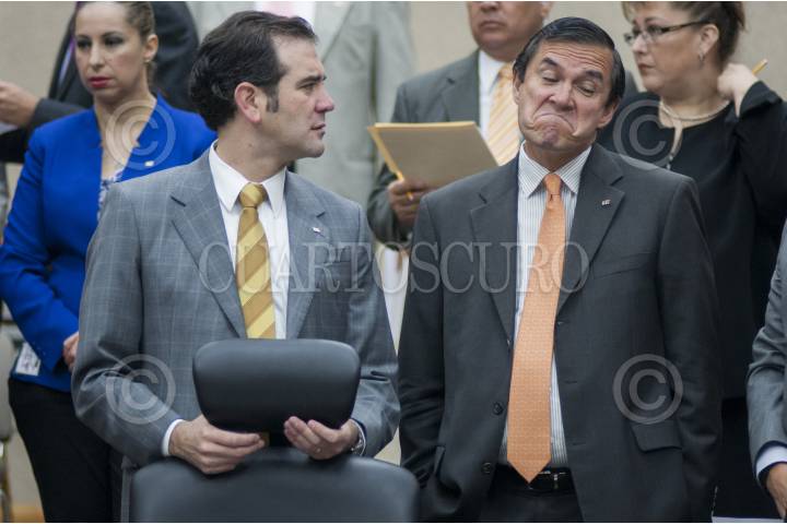 MÉXICO, D.F., 13JULIO2015.- Los consejeros del INE, Adriana Margarita Favela Herrera y Enrique Andrade Gonzalez, durante la sesión extraordinaria del consejo general del Instituto Nacional Electoral. FOTO: DIEGO SIMÓN SÁNCHEZ /CUARTOSCURO.COM