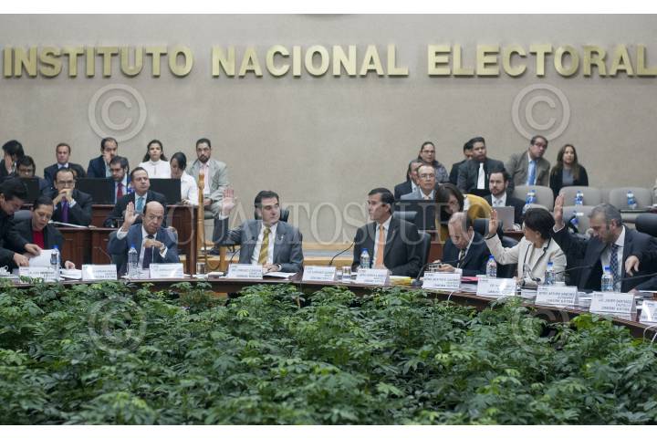 MÉXICO, D.F., 13JULIO2015.- Los consejeros del INE, Adriana Margarita Favela Herrera y Enrique Andrade Gonzalez, durante la sesión extraordinaria del consejo general del Instituto Nacional Electoral. FOTO: DIEGO SIMÓN SÁNCHEZ /CUARTOSCURO.COM