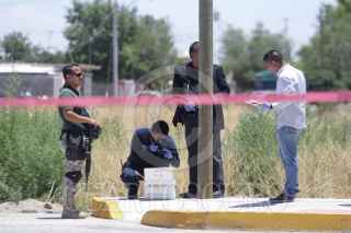 CIUDAD JUAREZ, CHIHUAHUA, 13JULIO2015.- Este lunes fue reportado a los números de emergencia el hallazgo de una cabeza humana al interior de una caja, en las inmediaciones de las calles Enrique Pinoncelli y Aeronáutica. Hasta ese cruce acudieron elementos de los distintos cuerpos policíacos, quienes aseguraron el lugar y comenzaron con las respectivas investigaciones para localizar el resto del cuerpo. FOTO: NACHO RUIZ /CUARTOSCURO.COM