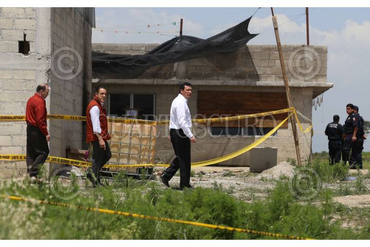 ALMOLOYA, ESTADO DE MÉXICO., 13JULIO2015.- Miguel Ángel Osorio Chong, Secretario de gobernación acompañado de Monte Alejandro Rubido, Almendro Encinas, Omar Fayad y Felioe Solía Acero, Enrique Galindo acudieron a la casa donde se fugó Joaquín Guzmán Loera, "El Chapo". FOTO SAÚL LOPEZ /CUARTOSCURO.COM