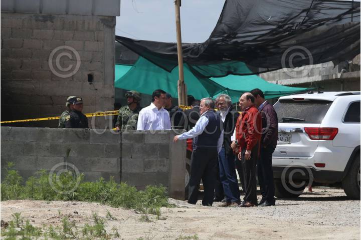 ALMOLOYA, ESTADO DE MÉXICO., 13JULIO2015.- Miguel Ángel Osorio Chong, Secretario de gobernación acompañado de Monte Alejandro Rubido, Almendro Encinas, Omar Fayad y Felioe Solía Acero, Enrique Galindo acudieron a la casa donde se fugó Joaquín Guzmán Loera, "El Chapo". FOTO SAÚL LOPEZ /CUARTOSCURO.COM