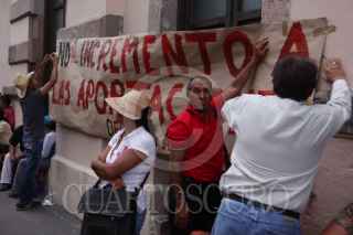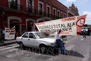 MORELIA, MICHOACÁN, 14JULIO2015.- Docentes adheridos a la CNTE, protagonizaron una manifestación a las puertas del Congreso estatal y en algunas vialidades de Morelia, para mostrar su desacuerdo por la reforma a la ley del Sistema de Pensiones Civiles del Estado de Michoacán, el cual planean los legisladores locales y que pretende subir las aportaciones de un 5.5% a un 11%. FOTO: ALAN ORTEGA /CUARTOSCURO.COM