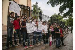 CULIACÁN, SINALOA, 14JULIO2015.- Alrededor de 30 personas, la mayoría jóvenes, realizaron una pequeña marcha a la catedral en apoyo a Joaquín ¨El Chapo¨ Guzmán, quien el pasado sábado se dio a la fuga del penal de alta seguridad del Altiplano. FOTO: RASHIDE FRIAS /CUARTOSCURO.COM