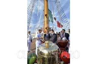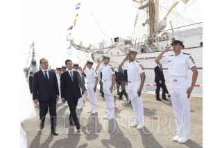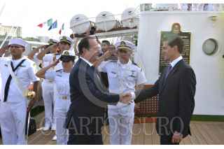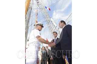 MARSELLA, FRANCIA, 15JULIO2015.- En el Muelle J4 del Puerto de Marsella los Presidentes de México, Enrique Peña Nieto, y de Francia, Francois Hollande, realizaron una visita al Buque-Escuela Cuauhtémoc. Abordo, el Mandatario mexicano y su homólogo francés saludaron y conversaron con los marinos que se instruyen en él. FOTO: PRESIDENCIA /CUARTOSCURO.COM