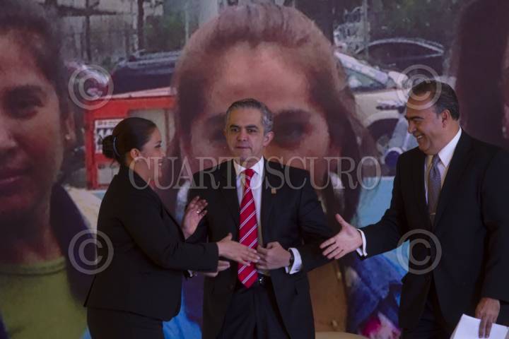 MÉXICO, D.F., 16JULIO2015.- Dispositivo de seguridad en torno al Jefe de Gobierno Miguel Ángel Mancera, al finalizar la ceremonia en donde se entregaron créditos para mejoramiento de vivienda por parte del INVI, en la explanada de la delegación Venustiano Carranza. FOTO: MOISÉS PABLO /CUARTOSCURO.COM