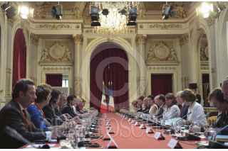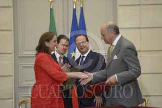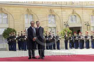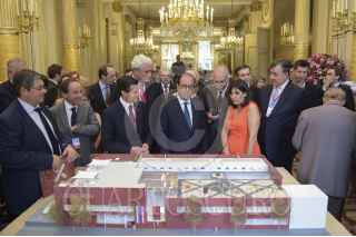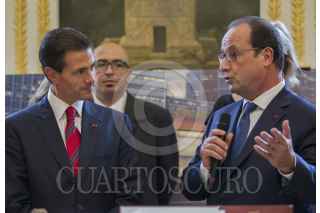 PARÍS, FRANCIA, 16JULIO2015.- El presidente Enrique Peña Nieto, y su homólogo francés, Francois Hollande, conocieron del proyecto arquitectónico Casa Mexicana, del cual suscribieron una declaración conjunta. Ambos recibieron con entusiasmo la posibilidad de que el sector privado mexicano desarrolle un proyecto a las orillas del Sena que tendrá como objetivo promover los intercambios económicos y expresiones culturales mexicanas en París. FOTO: PRESIDENCIA /CUARTOSCURO.COM