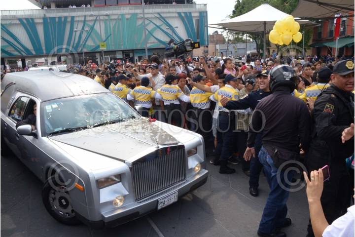 MÉXICO, D.F., 16JULIO2015.- Los restos del cantautor Joan Sebastian, fueron llevados a la explanada de la plaza Garibaldi donde fue despedido por cientos de seguidores, dicho recorrido se llevo a cabo al termino del homenaje en el Centro Cultural Roberto Cantoral, donde le realizaron un homenaje. FOTO: SAÚL LÓPEZ /CUARTOSCURO.COM