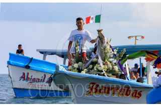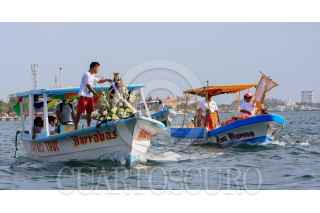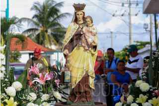 CANCÚN, QUINTANA ROO, 16JULIO2015.- Pescadores realizan una procesión en honor a la Virgen del Carmen. A bordo de una lancha llegaron hasta la iglesia del mismo nombre. FOTO: ELIZABETH RUIZ /CUARTOSCURO.COM