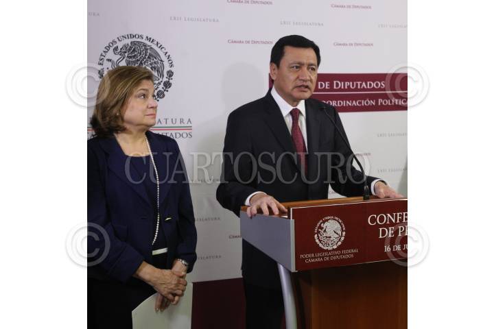 MÉXICO, D.F., 17JULIO2015.- El titular de la Secretaría de Gobernación Miguel Ángel Osorio Chong y la Procuradora General de la República Arely Gómez ofrecieron ayer por la noche una conferencia de prensa al finalizar su encuentro con los diputados que integran la Comisión Nacional de Seguridad Nacional en la Cámara de Diputados. Durante el encuentro con medios respondieron sobre los resultados de las investigaciones en torno a la fuga de Joaquín Guzmán Loera alias El Chapo, del penal del Altiplano. FOTO: GABINO ACEVEDO /CUARTOSCURO.COM