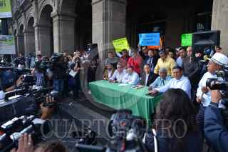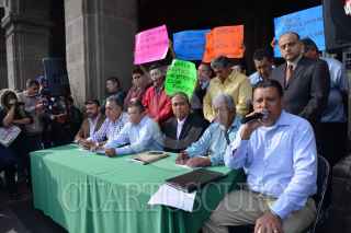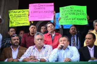 MÉXICO, D.F., 17JULIO2015.- Taxistas Organizados de la Ciudad de México, realizaron conferencia de prensa frente a las oficinas del Gobierno del Distrito Federal para denunciar que el Acuerdo pro Uber y Cabify "fue un albazo", mientras se encontraban en pláticas con las autoridades. Los líderes informaron que el acuerdo en el que se da el registro a dichas empresas, como servicio de transporte de pasajeros, es ilegal y se realiza en contra de los taxis ya establecidos. Acusaron al ahora, ex secretario de Movilidad, Rufino H. León Tovar, como el principal conductor de una política personal para beneficiar a las empresas transnacionales. FOTO: ADOLFO VLADIMIR /CUARTOSCURO.COM