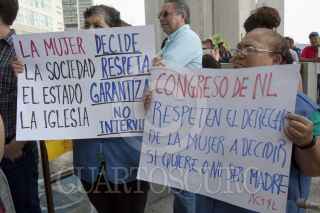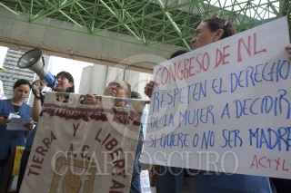 MONTERREY, NUEVO LEÓN, 17JULIO2015.- Activistas de diversos grupos acudieron al Congreso del Estado para protestar en contra de la aprobación de la iniciativa que protege la vida desde la fecundación, así mismo criminalizar a las mujeres que opten por el aborto en el estado. Se estima que la LXXIII Legislatura Local concluya la segunda vuelta de votaciones que el PartidoAcción Nacional tiene agendado en el periodo extraordinario de sesiones sobre el tema del aborto. FOTO: GABRIELA PÉREZ MONTIEL / CUARTOSCURO.COM