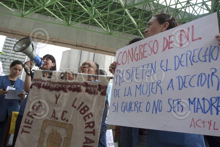 MONTERREY, NUEVO LEÓN, 17JULIO2015.- Activistas de diversos grupos acudieron al Congreso del Estado para protestar en contra de la aprobación de la iniciativa que protege la vida desde la fecundación, así mismo criminalizar a las mujeres que opten por el aborto en el estado. Se estima que la LXXIII Legislatura Local concluya la segunda vuelta de votaciones que el PartidoAcción Nacional tiene agendado en el periodo extraordinario de sesiones sobre el tema del aborto. FOTO: GABRIELA PÉREZ MONTIEL / CUARTOSCURO.COM