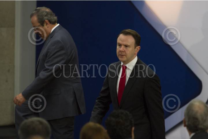 MÉXICO, D.F., 17JULIO2015.- Eugenio Baeza Fares, presidente del consejo administrativo y director general del Grupo Bafar, Enrique Peña Nieto, Presidente de México e Ildefonso Guajardo Villareal, secretario de Economía, durante el anuncio de inversión del Grupo Bafar en una planta agroindustrial en la Piedad, Michoacán, que se realizó en el salón Adolfo López Mateos de la Residencia de Los Pinos. FOTO: MOISÉS PABLO /CUARTOSCURO.COM