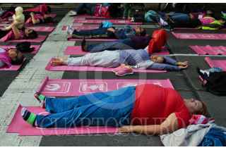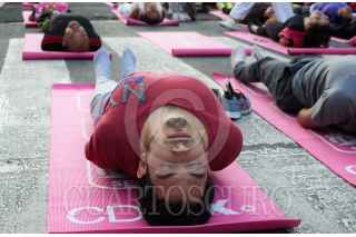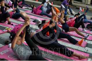 MÉXICO, D.F., 19JULIO2015.- A temprana hora, los asistentes a la clase masiva de yoga disfrutan de esta disciplina que contribuye a un mejoramiento de la salud física y mental. Expertos guían a los practicantes y explican las posturas que habrán de ejecutar, así como ejercicios de relajación y respiración. FOTO: MARÍA JOSÉ MARTÍNEZ /CUARTOSCURO.COM