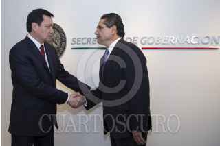 MÉXICO, D.F., 20JULIO2015.- Miguel Ángel Osorio Chong, secretario de gobernación, se reunió con el gobernador electo de Michoacán, Silvano Aureoles Conejo, con quien revisó y analizó la agenda de trabajo de ese estado. FOTO: SEGOB /CUARTOSCURO.COM