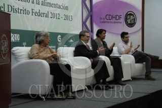 MÉXICO, D.F., 21JULIO2015.- La Comisión de Derechos Humanos del Distrito Federal presentó el informe especial " El derecho a la alimentación en el Distrito Federal 2012-2013". Presidieron el evento Alicia Carriquiriborde, representante de la sección mexicana FÍAN Internacional; Manuel Granados Covarrubias, consejero jurídico de servicios legales del D.F.; Perla Gómez Gallardo, titular de la CDHDF y Paulo Ramírez, representante de la FAO. FOTO: ISABEL MATEOS /CUARTOSCURO.COM