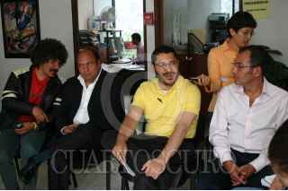 MÈXICO,D.F.17MAYO2006..- Luis Bravo, Secretario de Movimientos Sociales, David Sànchez Candidato a Diputado Federal por el PRD, Martì Batres Presidente del PRD del Distrito Federal y Carlos Garcìa de Leòn Candidato Plulinominal por el mismo partido, durante la conferencia de prensa por el "Dìa Mundial Contra la Homofobia" y en donde tambièn asistieron dirigentes de organizaciones civiles que estàn en contra de la discriminaciòn. FOTO: M. Tulia Pèrez Bocanegra/CUARTOSCURO.COM