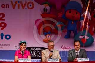 MÉXICO, D.F., 21JULIO2015.- El espectáculo musical de Pocoyo se presentará en el Teatro Blanquita los días 1, 2, 8 y 9 de agosto en funciones de matiné. Acompañado de sus amigos Pato, Elly, Loula, Pulpo y Pajaroto, los pequeños disfrutarán de grandes aventuras. Durante la conferencia de prensa, la cantante Ana Pamela Garcés, el productor Eduardo Marqués y el director Eduardo Partida, aseguraron que los con este espectáculo los pequeños serán estimulados a bailar, cantar, reír y gozar. FOTO: MOISÉS PABLO /CUARTOSCURO.COM