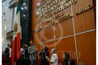 CHILPANCINGO, GUERRERO, 21 JULIO 2015.- El gobernador Rogelio Ortega Martínez, acompañado de integrantes del Ejército, Marina y el presidente de la comisión de gobierno, Bernardo Ortega Jiménez, asistió a la develación de las letras doradas del Teniente “José Azueta Abad”, en el Salón de Sesiones de la sexagésima legislatura. FOTO: JOSÉ I. HERNÁNDEZ /CUARTOSCURO.COM